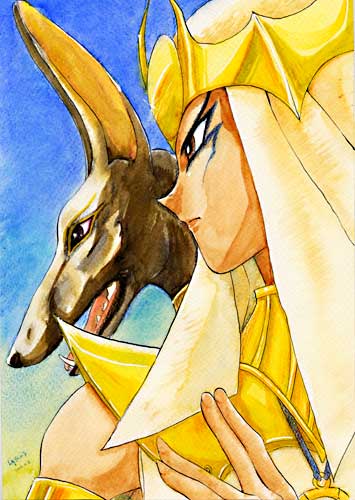 20年来の友人のるしゃるさんが、マハ逝去でダウン気味の私を励まそうとアヌビスと彼を描いて送って下さいました。ありがとヨるしゃるさん・・・うるうる。