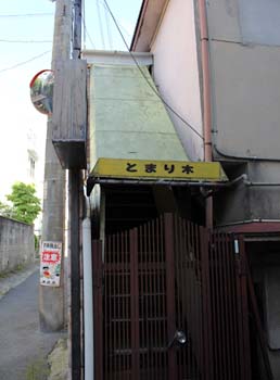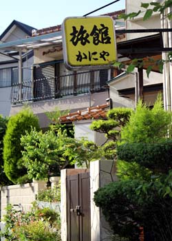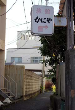 ![]() モロ民家の間に建つかにや。この看板を眺めていると、夕食にはカニどころか、スーパーで売ってるレベルの刺身を出されかねない気がしてきた……。 |