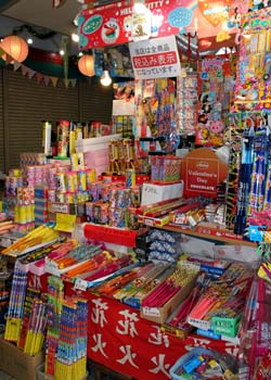 ![]() 配色バランスを考えて、キレイに整理された模範的ディスプレイ。この色の洪水、インドの神さまグッズを売ってる店みたい。 |