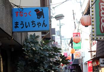 ![]() 今週の「かわいいで賞」はすなっく まういちゃんに決定です! 自分でデコールシールを貼って作ったみたいな「まういちゃん」の微妙なずれ方とか、「すなっく」がひらがななところとか、まういちゃんが黒のラブラドールなのが一目瞭然(それも赤い首輪!)なとことか、そもそも店名を「まういちゃん」にしちゃうセンスとか、どれも店主が天然でやってる感がいっぱいで、もーたまらんかわゆいワー(=´ω`=) |