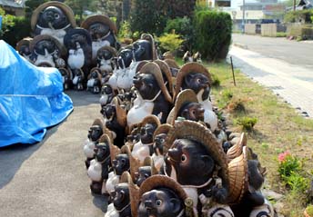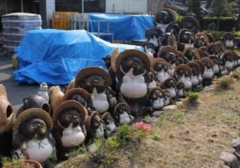 ![]() 町を歩けばタヌキ、狸、またたぬき。人口よりもタヌキの置物の方が多そうだ。 |