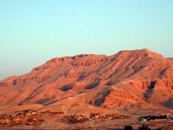 ![]() ハトシェプスト葬祭殿からもう少し南の山。こう見えても結構険しい。ファラオが行方不明になったのはこういう場所か? よくこんな所から転げ落ちて生きてたな・・・さすがヒキの強いお方だ!それをちまちま捜してたお方はさすがヒキが・・・(以下略) |