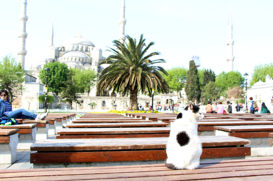 背後に見えるのはブルーモスク。トルコきっての観光スポットだ。