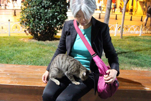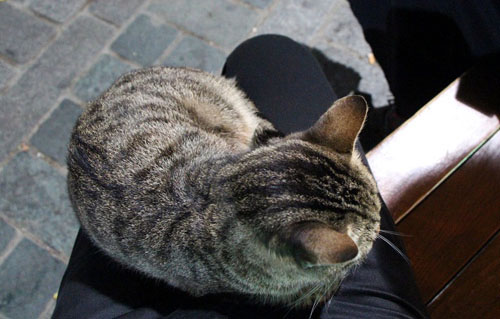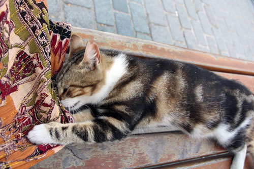 犬派の私なのに、イスタンブールではなぜか猫にモテモテ。猫はこの後、ひざに乗って爆睡しはじめたのだった。