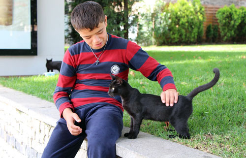 オッサンみたいな顔した少年と、やたらとツヤツヤした野良猫。
