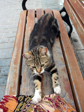 イスタンブール観光の総本山、スルタンアフメット地区の公園の猫