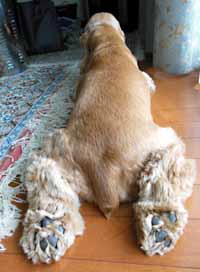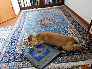 ハッと気づけば下の日記の日付が「8月26日(木)」になっちってたわ。いや、今なおしたけどね。デヘヘ。 散歩も大変だけど、マヤとペルシャ絨毯の共存にもけっこう気を遣う。なぜならば犬とは、「あそこだけは避けて欲しい」という人間の心を見透かしたかのように、座られたくない絨毯をきっちり選んで寝る生き物だからだ! 悪いことに、先週洗ったばかりだってのに、今のマヤっこはけっこう臭う。 加えて、じっと観察していると、寝ている間にちょっとだけよだれも垂らしている。先日枕にされたマッチョ雑誌も、表紙でにっこり微笑む海パン金髪男子が汚された。 こんなフケツな犬、湿気と脂は厳禁のペルシャ絨毯にの上には直乗せしたくない! ……というわけで、ノマドのように風の向くまま気の向くまま、ひんぱんに睡眠場所を変える犬を追いかけて、くさい毛皮が絨毯に直に当たらないよう、体の下に布っきれを敷き直す。 ほら、ちょっと目を離したすきにまた移動した!クロスをつかんで追いかける。口の部分がはみ出たら、下にティッシュを敷いてやる。 絨毯を巻き上げて床に寝かせれはいーじゃんという声も聞こえるけれど、股関節に爆弾を抱えている犬が、フローリングですっ転んで怪我をするのも怖いのだよねー。 こう書いてみると疲れて当然って気がしてきたわ。 |