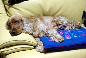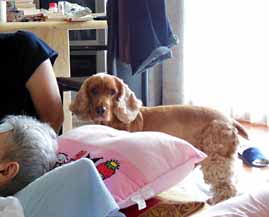 実家に戻すか自宅に置くか、己の体力、日中最高気温、不快指数、アメダス、ヘボピーの手間、ヘボピーの機嫌、ヘボピーへのごますり、といったもろもろのファクターを天秤にかけた結果、昨夜の時点では、「もうちょっと預かる」という結論が導き出された。 だが週が明け、今日から金曜日までみっちり会社に行かなきゃならないと思うと、襲い来る急激なのぼせ・肩こり・立ちくらみ。原因は明らか。プレッシャーだ。 昼休みの散歩については、犬をカートに入れてマンションを出入りしても、周囲200メートルに響き渡る悲鳴を上げさせずに済む方法(※)を編み出したので、ほんのちょっぴり楽になった。 ※……。犬入りカートを両手で抱え、カートのビニールを隔てて犬のわき腹と私の胸をくっつけながら運ぶと、若干恐怖心が薄れるらしく、グギャングゥオンギャン(絶叫)→キャンキャン程度に鳴きのボリュームが低下。 それでもさすがに滞在が2週間に及ぶと我が家のルールにも慣れてきたようで、出かける時に「さあ!すずしいすずしいしょっかー!」と声をかけると、自ら進んで留守番用のケージにすっ……と入るくらいには利口になって愛らしい。 そんなこんなで、いつもは自分独りだけの部屋に、デブのコッカースパニエルがきゅるんとした顔で座っていると、たとえそいつが悪魔の犬だとしても癒されるメリットはでかいので、もうちょっと、もうちょっと、と頑張ってきた。 されど心と肉体は裏腹で。いつギブアップして実家にお帰り頂くか、これはすでに己の精神力との戦いだ。