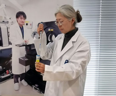 これは某大学のコスプレブースである。研究室の写真を背景に白衣をまとい、それっぽいポーズをするあたくし。
