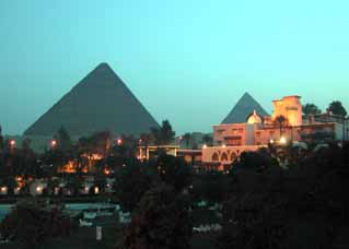 エジプトに到着して初めて見たピラミッドが夜のホテルのテラスからじゃ、そりゃムードも盛り上がらざるを得ないわよねぇ!(笑)